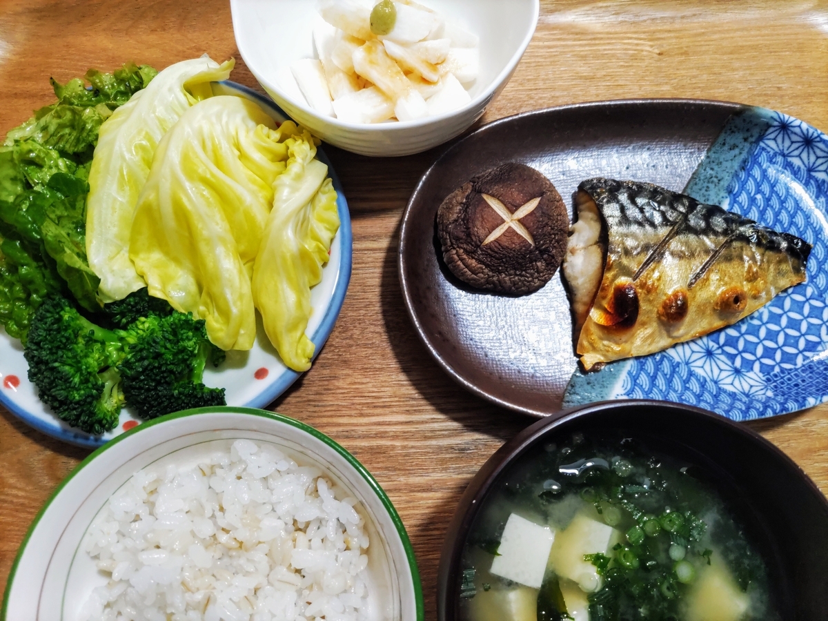 今日の晩ごはん 焼き塩サバ